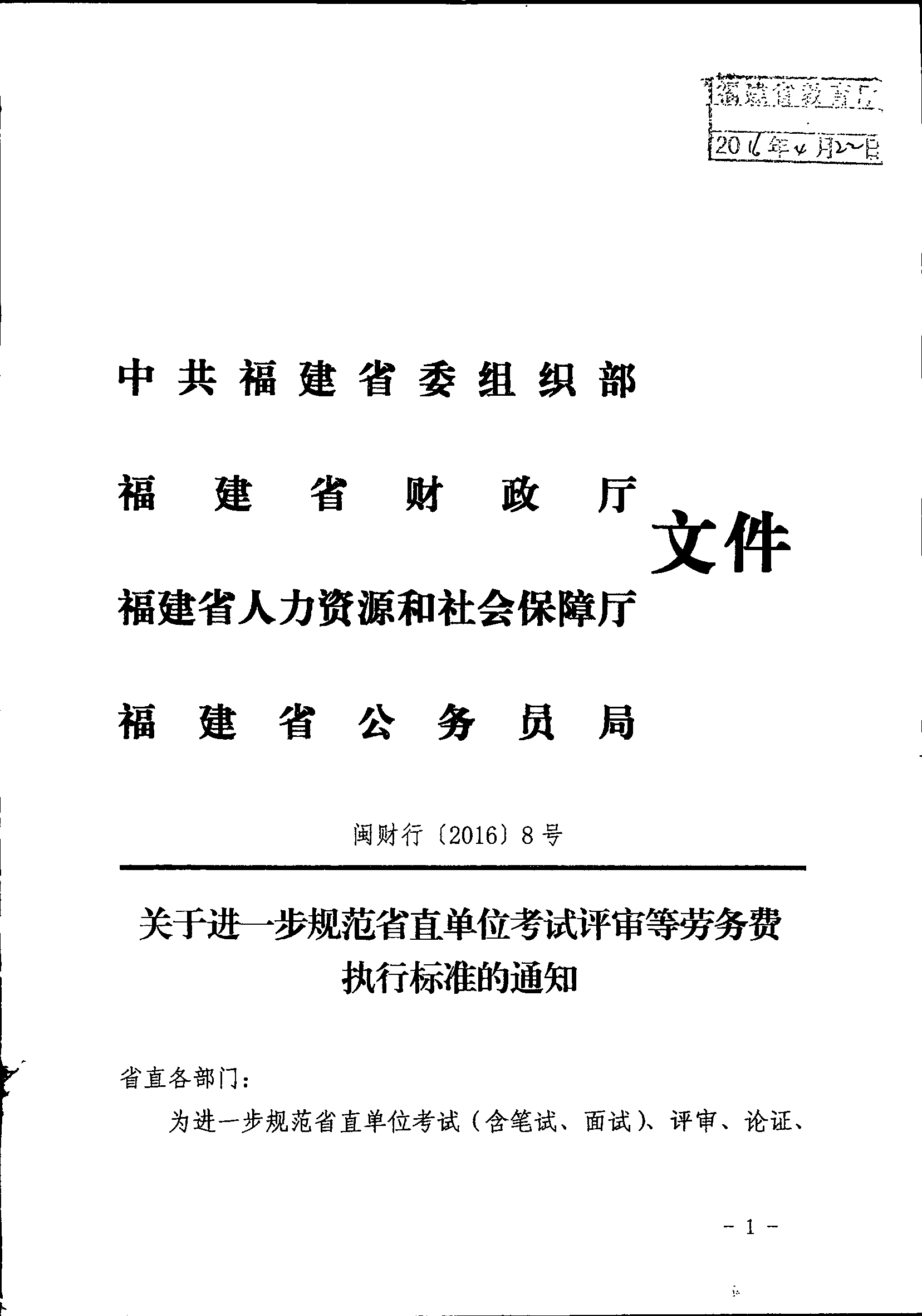 闽财行【2016】8号评审劳务标准