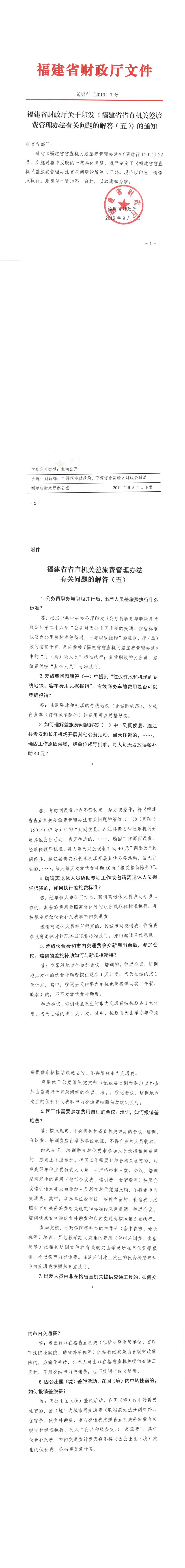 闽财行【2019】7号_福建省财政厅关于印发《福建省省直机关差旅费管理办法有关问题的解答(五)》的通知.rar